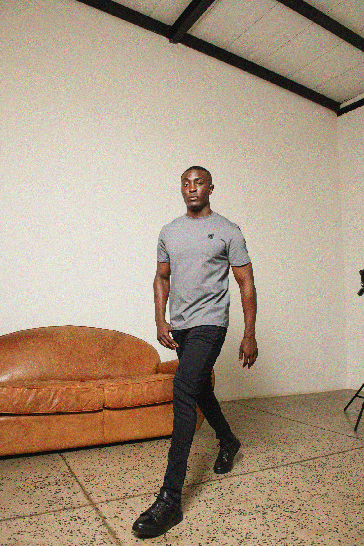 Introducing the Fade Iconic Badge Slim Fit T-shirt Grey, a quintessential piece from Fade's minimalist-inspired essentials collection for men. Crafted from a premium blend of 95% cotton and 5% spandex, this t-shirt offers exceptional comfort and a touch of stretch. Featuring the iconic Fade Iconic badge on the chest and a Fade A print on the back, it embodies understated elegance and versatility for everyday wear.